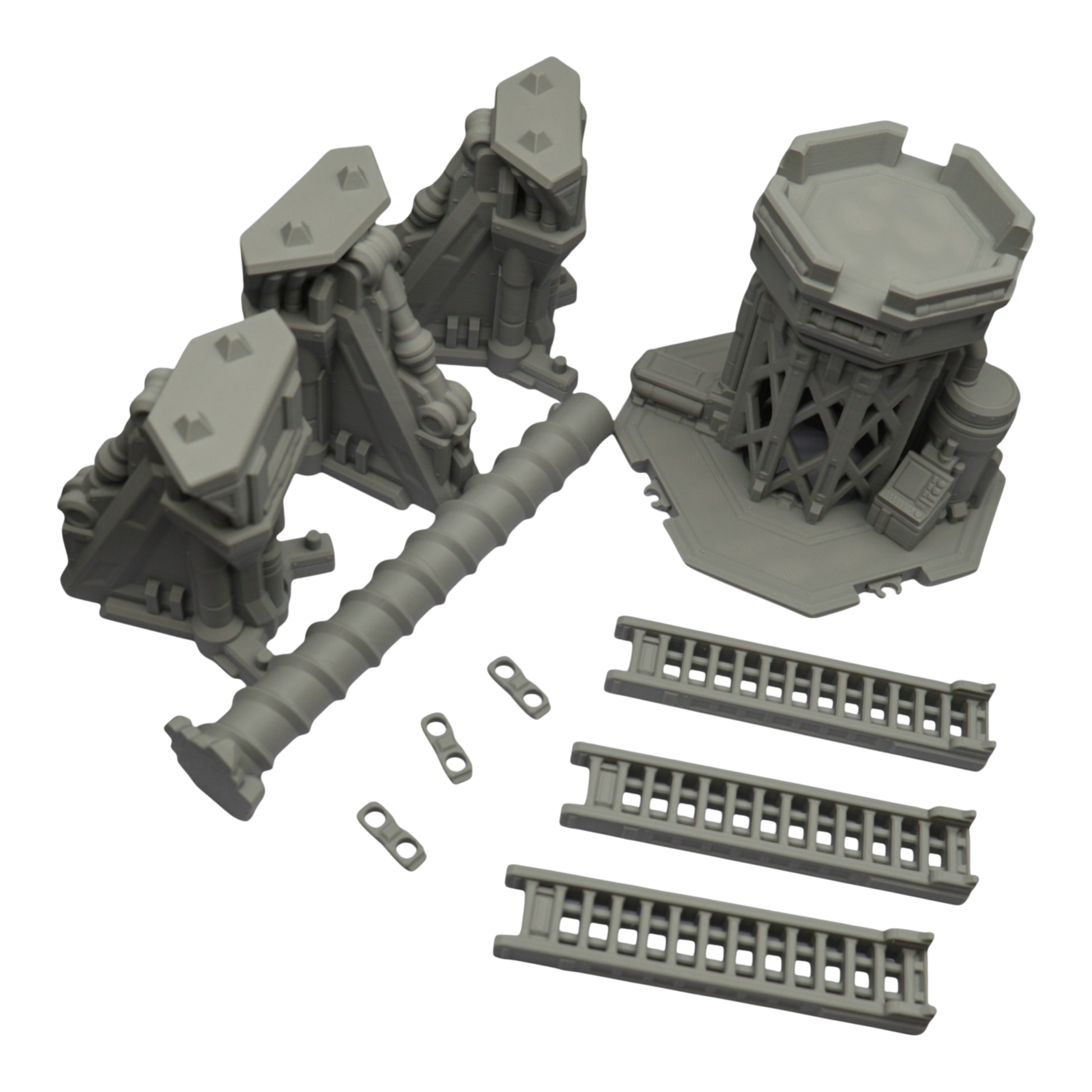 All scenery and terrain is 3D printed using a plant based grey plastic filament (PLA). The shade of grey may vary due to material suppliers and availability, please message if you have a specific requirement. Due to the nature of 3D printing there may be minor imperfections, however all items are quality checked before being posted. The miniature models used for product photos are to show sizing and display purposes only. They are not included in the orders. The 3D Models you receive will be of the same or better quality than those displayed in the listing pictures. All items are cleaned from artifacts and "stringing" (the wispy lines of material from the production process).